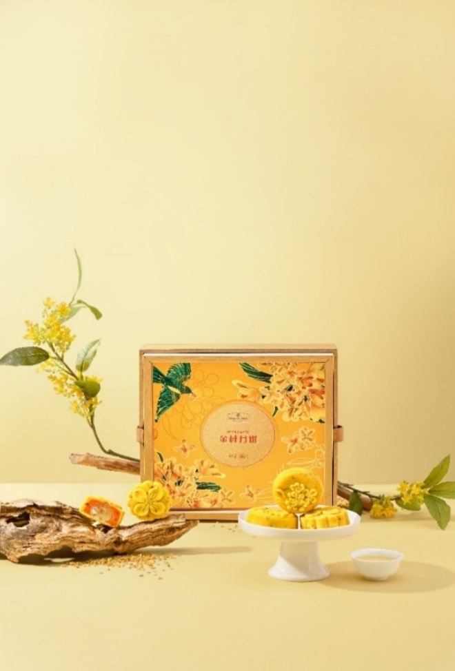 以花制餅,為多層次地呈現(xiàn)桂花香,山姆優(yōu)選品質原料,不僅研制了金桂流心、金桂奶黃兩種口味,還將金桂落入餅皮地制作中,讓月餅從里到外散發(fā)金桂香氣。該禮盒的設計延續(xù)金桂元素,盒蓋可二次利用變身相框。
