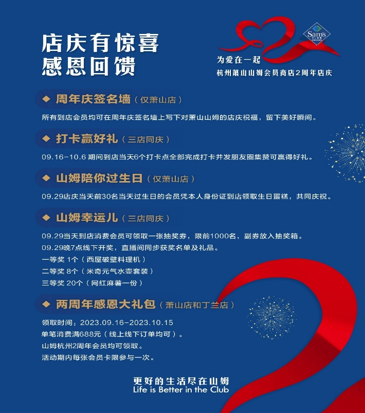 蕭山山姆店兩周年店慶,以禮相送,感恩有你