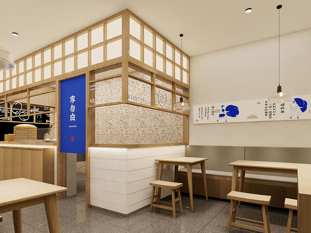 新一版的品牌視覺系統(tǒng)以寶藍(lán)色和白色作為主色調(diào),門店內(nèi)部以淺木色為主,同步優(yōu)化了照明系統(tǒng)、餐廳動(dòng)線,整體視覺效果更加敞亮、通透,給人以干凈健康的感覺。