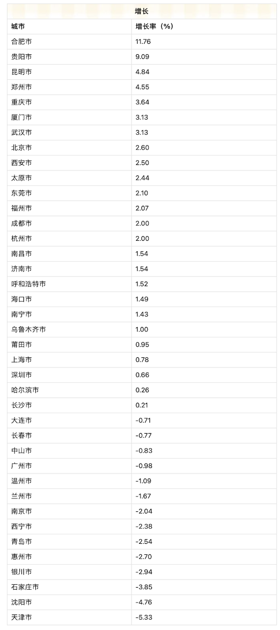 調(diào)查發(fā)現(xiàn),2023年城市便利店門店數(shù)量實現(xiàn)正增長的城市占所調(diào)查城市總數(shù)的64.1%;門店數(shù)減少的城市占所調(diào)查城市總數(shù)的35.9%。大部分城市便利店的發(fā)展保持了穩(wěn)定的發(fā)展。其中合肥市的便利店數(shù)量增長率達(dá)到了11.76%,是所有城市中增長最高的,其次是貴陽和昆明。