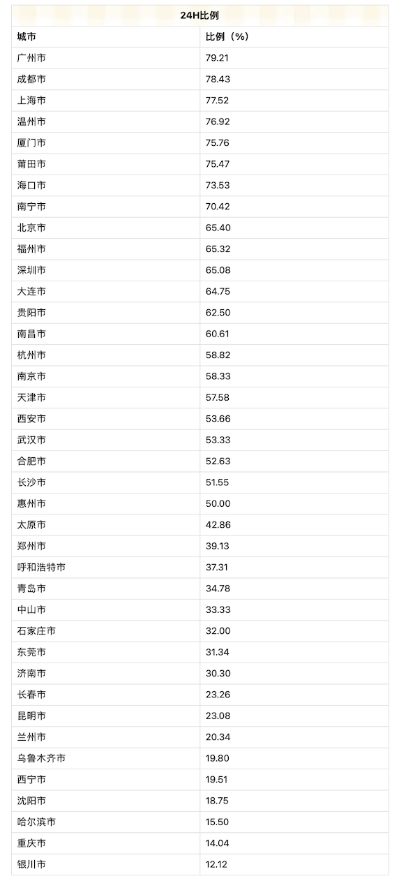 從本次調(diào)查來看,各個城市24小時便利店的比例同比去年基本保持不變,且各城市間的差距明顯,呈現(xiàn)出南高北低的特點。這與城市的氣候條件、經(jīng)濟(jì)水平、當(dāng)?shù)鼐用竦南M(fèi)習(xí)慣有著很大的關(guān)系。從投入產(chǎn)出比的角度來看,24小時便利店的運(yùn)營成本要比一般的便利店高,因此也在很大程度上限制了24小時便利店的發(fā)展。但是從服務(wù)民生的角度來看,24小時便利店除了保障供應(yīng)、滿足消費(fèi)的基本功能之外,還可以更多的承擔(dān)滿足消費(fèi)者日常應(yīng)急需求的責(zé)任。所以通過政策引導(dǎo),提高24小時便利店的比例可以有效提升城市居民服務(wù)的質(zhì)量。