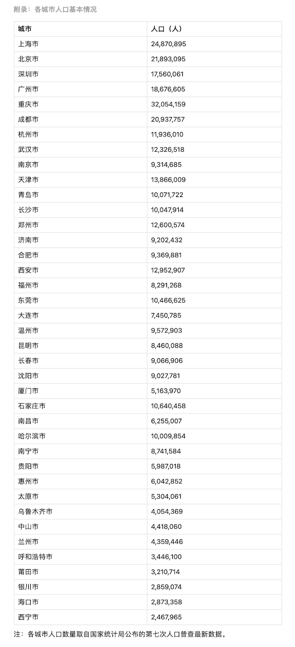 本年度在對各城市便利店門店總量的調(diào)查采用了與去年相同的方法。采用企業(yè)反饋的調(diào)查問卷與百度地圖搜索相結(jié)合雙向驗證的方式。另外,城市人口數(shù)量采用了國家統(tǒng)計局公布的第七次人口普查最新數(shù)據(jù)。因此,各城市的便利店門店總量與城市門店飽和度會有一定程度的修正和調(diào)整。