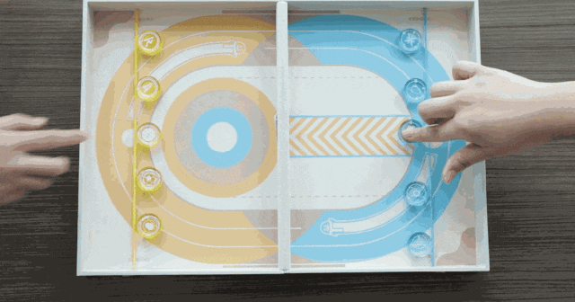 至于吃完月餅的叔叔阿姨(嗯?),則從禮盒內(nèi)部發(fā)現(xiàn)了一個手工小作業(yè)。心靈手巧的人可以動手組裝出一個迷你運動場,然后與親朋好友來上一場鵝式“冰壺”賽。