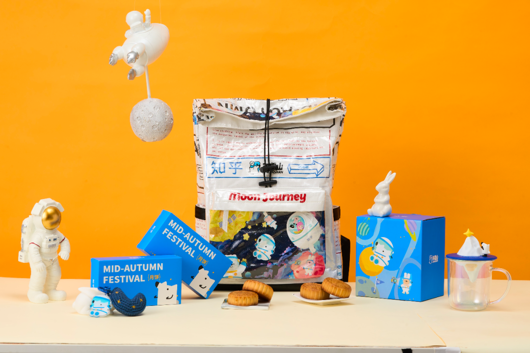 除了用以補充能量的月餅,登月設(shè)備里還包含了一系列知乎特色周邊,比如實用的加濕器、玻璃杯。當(dāng)然,每一個物件上面都趴著宇航員劉看山。