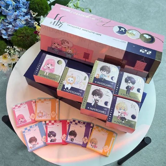 疊紙小巧的禮盒外印著自家標(biāo)志性的游戲角色,暖暖與大喵自不必說,月餅上除了“如月之恒”字樣還各有一位《戀與》男主角,即使是Q版形象也不妨礙評委輕松認(rèn)出“那群男人”。