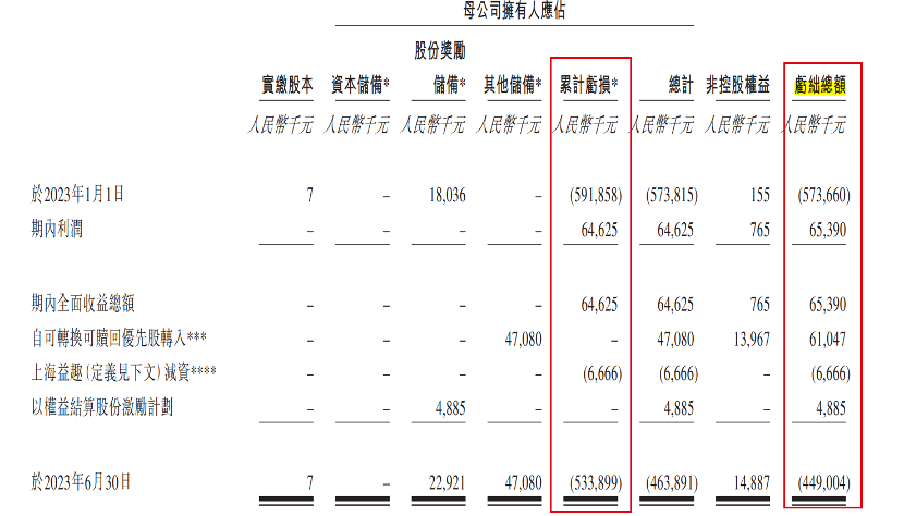 但拉長(zhǎng)時(shí)間來(lái)看,趣致集團(tuán)仍然整體虧損。于2023年6月30日,集團(tuán)虧損總額4.49億元,母公司擁有人應(yīng)占累計(jì)虧損高達(dá)5.34億元。