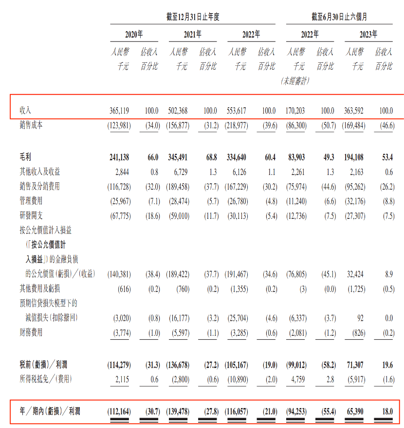 招股書顯示,2020年-2022年,其收入呈現(xiàn)增長(zhǎng)趨勢(shì),分別為3.65億元、5.02億元、5.54億元,但利潤(rùn)卻是年年虧損,分別虧損1.12億元、1.39億元、1.16億元。