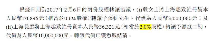 2013年10月,上海長(zhǎng)鷹認(rèn)繳上海趣致約7%的股權(quán),代價(jià)為200萬(wàn)元。據(jù)悉,上海長(zhǎng)鷹于上海趣致的股權(quán)是代劉小鷹持有。