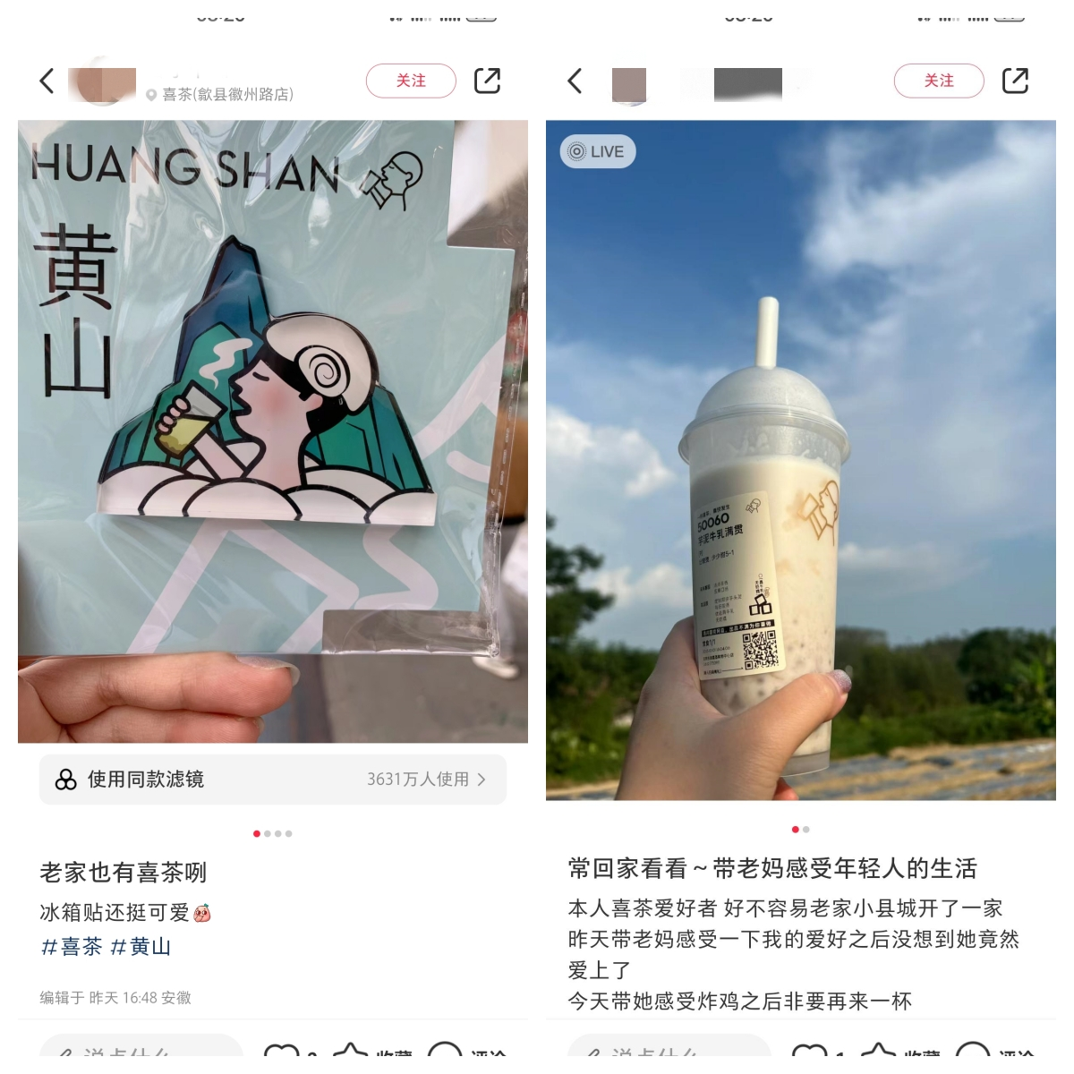 (圖:消費者在社交媒體分享老家喝喜茶的喜悅)