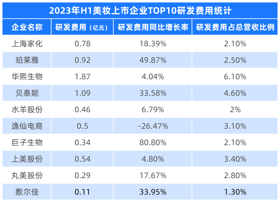 今年上半年,國貨美妝上市公司持續(xù)增強科研投入,10家公司的研發(fā)投入合計近7億元。