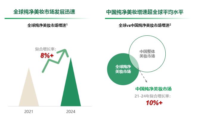 近年來(lái),國(guó)內(nèi)的純凈美妝市場(chǎng)正處于發(fā)展初期。《2023純凈美妝白皮書(shū)》中顯示,2021年至2024年全球純凈美妝市場(chǎng)的復(fù)合增長(zhǎng)率超過(guò)8%,其中中國(guó)純凈美妝市場(chǎng)的復(fù)合增長(zhǎng)率達(dá)到10%,增速超過(guò)全球平均水平。