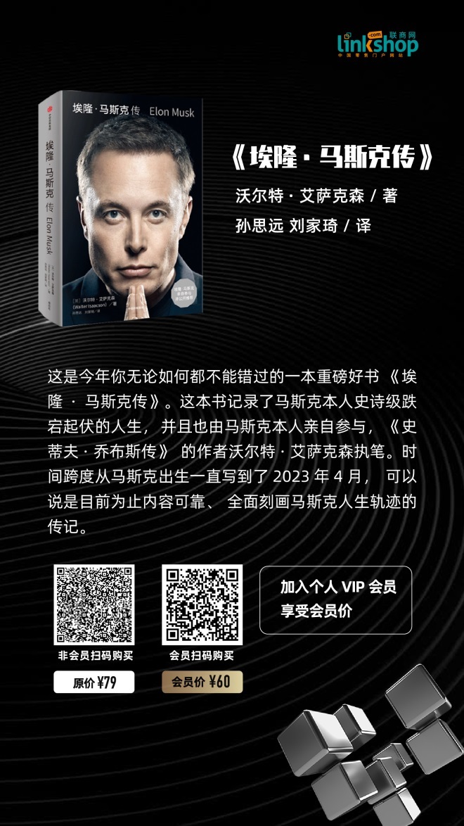馬斯克被譽(yù)為“硅谷鋼鐵俠”和“世界首富”,圍繞他的相關(guān)新聞報(bào)道和書籍非常之多,《埃隆·馬斯克傳》(點(diǎn)擊鏈接可立即購買)可謂當(dāng)下了解馬斯克最該讀的一本書。