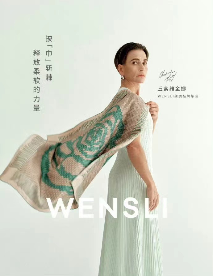 此前,另一杭州本地的國貨絲巾品牌WENSLI同樣官宣丘索維金娜為品牌摯友,其拍攝的物料則廣受好評。