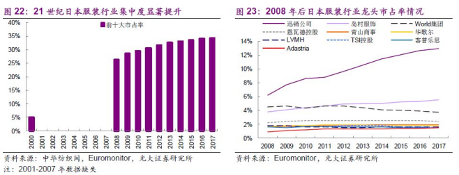 (3)日本服裝行業(yè)的市場(chǎng)集中度演變。