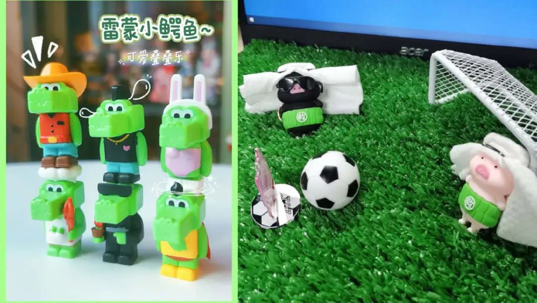 和林里黃鴨類似的還有檸季的小綠鱷魚,以及茶救星球的苦瓜豬,都是一杯送一只,看著消費(fèi)者桌子上的鴨豬魚動(dòng)物軍團(tuán)越來越壯大,我很難不懷疑檸檬茶行業(yè)有一個(gè)想開動(dòng)物園的心。不過后兩者的周邊顯然沒有林里出圈,因?yàn)槲疫未曾見過養(yǎng)豬人和養(yǎng)魚人。