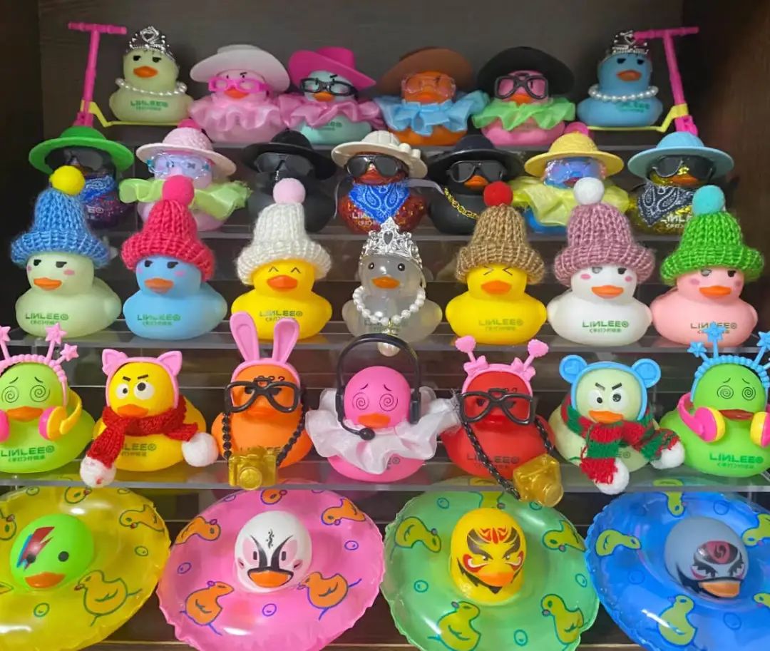 單單看裸鴨就有很多不同。表情就透露出了鴨生的喜怒哀樂,像我的鴨子們一看就不太聰明;身體除了五顏六色,有些鴨還全身亮閃閃頗有些中東氣勢(shì);還有些鴨子直接變異,成為限量版的貓鴨、狗鴨、和熊貓鴨。