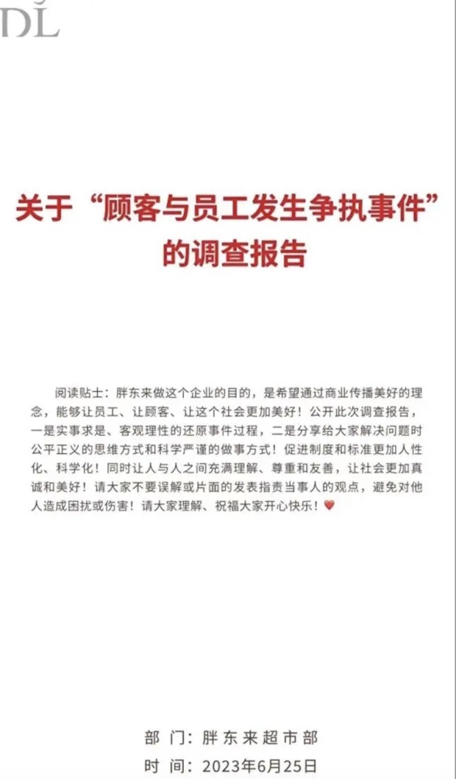最近沖上過熱搜的胖東來員工與顧客爭(zhēng)執(zhí)事件,能從另一個(gè)側(cè)面印證胖東來提倡的公平。胖東來開誠布公地把兩次調(diào)查過程詳細(xì)地記錄后,連同處理結(jié)果一并公布:?jiǎn)T工有錯(cuò),顧客有不妥,主管領(lǐng)導(dǎo)也有責(zé)任。事件發(fā)酵后給當(dāng)事員工造成了困擾,胖東來依據(jù)規(guī)章,給了員工5000元的安慰獎(jiǎng)勵(lì)。胖東來沒做公關(guān),也沒找人刪消息,只真誠地公布了處理過程及結(jié)果,就得到了網(wǎng)友的點(diǎn)贊。胖東來真誠對(duì)顧客,但不討好;關(guān)愛員工,但不溺愛,她極盡可能地尊重每一位獨(dú)立的個(gè)體。