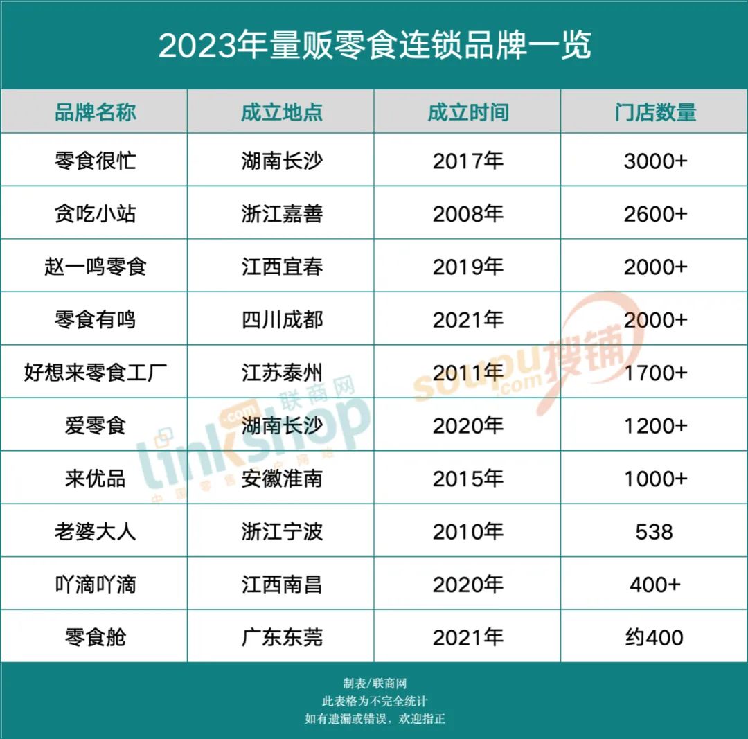 據聯商網不完全統(tǒng)計,目前量販零食品牌之間的差距并不大,且多數為區(qū)域品牌,并未實現全國布局。