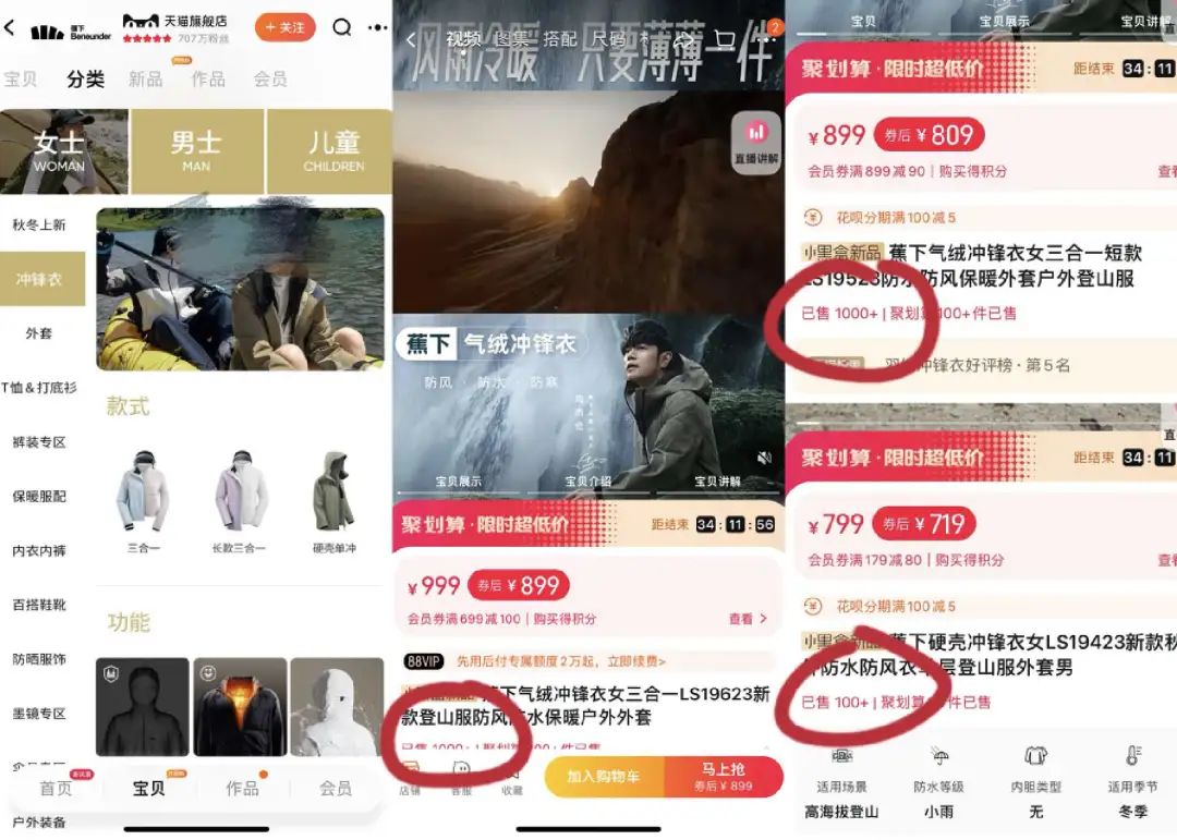 這似乎也是“跨行者”共同的難題,10月9日,燃次元在天貓波司登官方旗艦店也看到,其定價1999元的三合一沖鋒衣已售僅為300+。