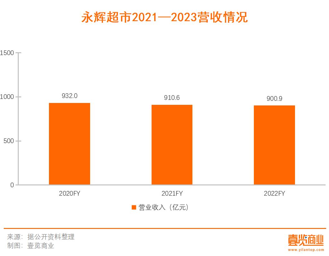 盡管在今年中旬永輝發(fā)布的三季度財報顯示永輝已經(jīng)實現(xiàn)扭虧為盈,但是從近三年永輝的營收來看,永輝目前的營收增速情況不容樂觀,2020年營收931.99億元,營收增速為9.8%;2021總營收為910.62億元,營收增速為-2.29%;2022年營收為900.91億元,營收增速為-1.07%,僅有2020年一年增速為正,連續(xù)兩年營收規(guī)模都在下滑。