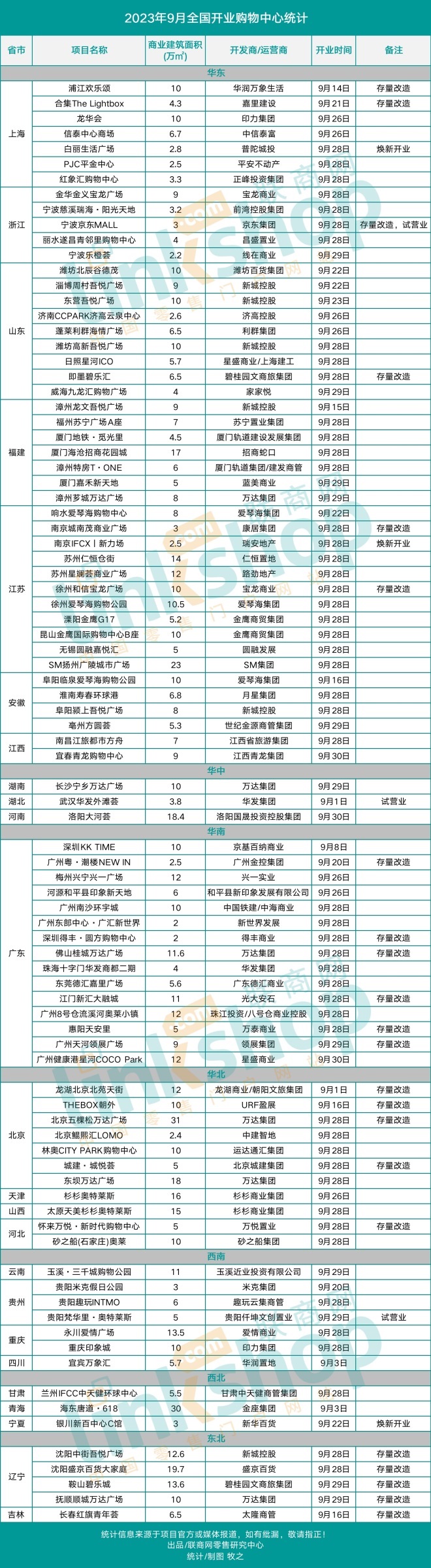 附:2023年9月全國新開商業(yè)項(xiàng)目統(tǒng)計表
