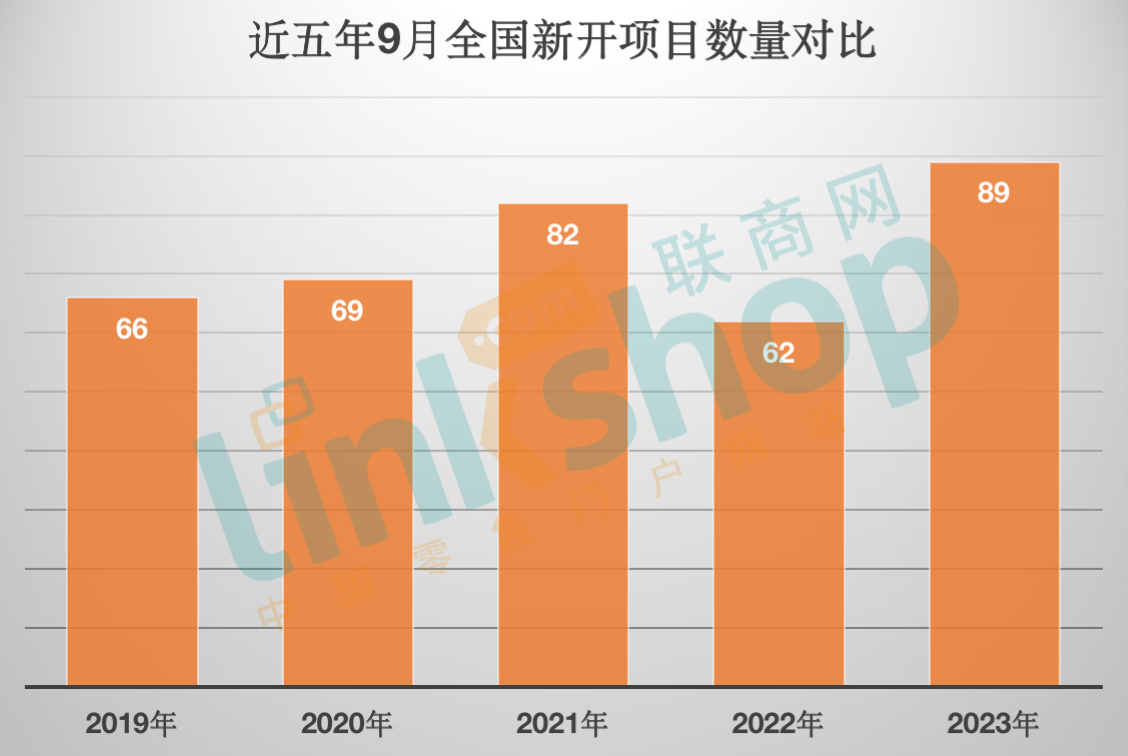 9月份,全國新開89座商業(yè)項(xiàng)目,與8月份的17家相比,環(huán)比增長高達(dá)424%,與2022年同期的62家相比,增長44%。