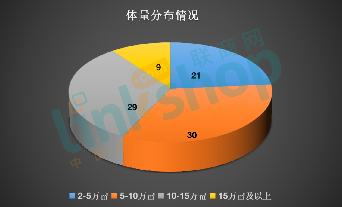 從商業(yè)規(guī)模的分布情況上看,規(guī)模在2至5萬㎡(含2萬㎡,不含5萬㎡)有21個商業(yè)項(xiàng)目,占比約24%;5至10萬㎡(含5萬㎡,不含10萬㎡)有30個商業(yè)項(xiàng)目,占比約34%;10至15萬㎡(含10萬㎡,不含15萬㎡)有29個商業(yè)項(xiàng)目,占比約32%;15萬㎡及以上有9個項(xiàng)目,占比約10%。