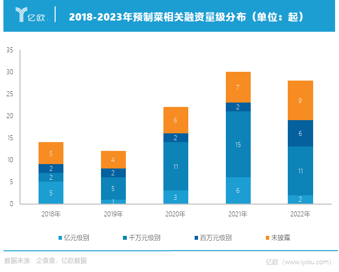 資本也紛紛下海撈魚(yú)。據(jù)不完全統(tǒng)計(jì),2021年國(guó)內(nèi)預(yù)制菜相關(guān)融資事件共有30起,其中有6起億元級(jí)別的融資,比如鍋圈食匯當(dāng)年曾連獲兩次融資,數(shù)額超3億美元;2022年消費(fèi)賽道投資遇冷,但預(yù)制菜領(lǐng)域仍有28起融資事件,比如陸正耀的舌尖英雄號(hào)稱(chēng)獲得了16億元融資……