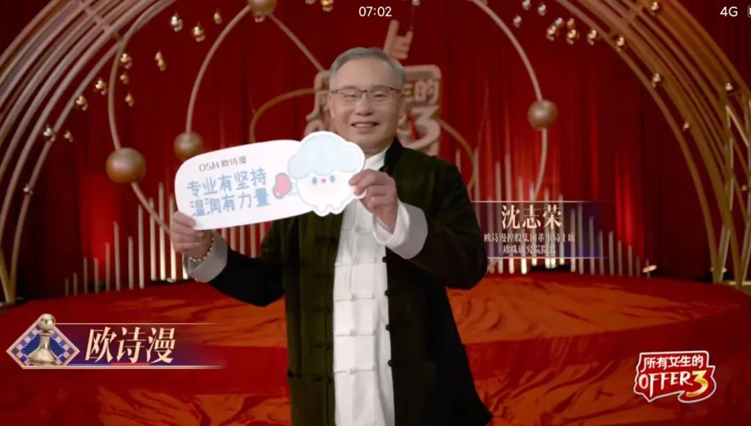 去年在出場(chǎng)的短短幾分鐘內(nèi),歐詩(shī)漫董事長(zhǎng)沈志榮以獨(dú)特的個(gè)人魅力被B站網(wǎng)友譽(yù)為“最圈粉”老爺爺。今年的沈爺爺同樣出眾,一頭銀發(fā)配上一身唐裝君子風(fēng)骨,一出場(chǎng)就送了主持人慶子一個(gè)珍白因的玩偶和一顆珍珠。