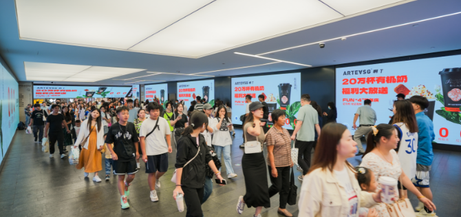 據(jù)了解,今年國慶是ARTEASG·啊T回歸國內(nèi)市場4周年。為此,ARTEASG·啊T在長沙的國金街、五一廣場、黃興廣場步行街,廣州的北京路、上下九步行街,以及廣州、深圳地鐵等人流密集的區(qū)域,都投放了亮橙色的大屏廣告,并且打出“20萬杯有機(jī)奶福利大放送”的標(biāo)語。