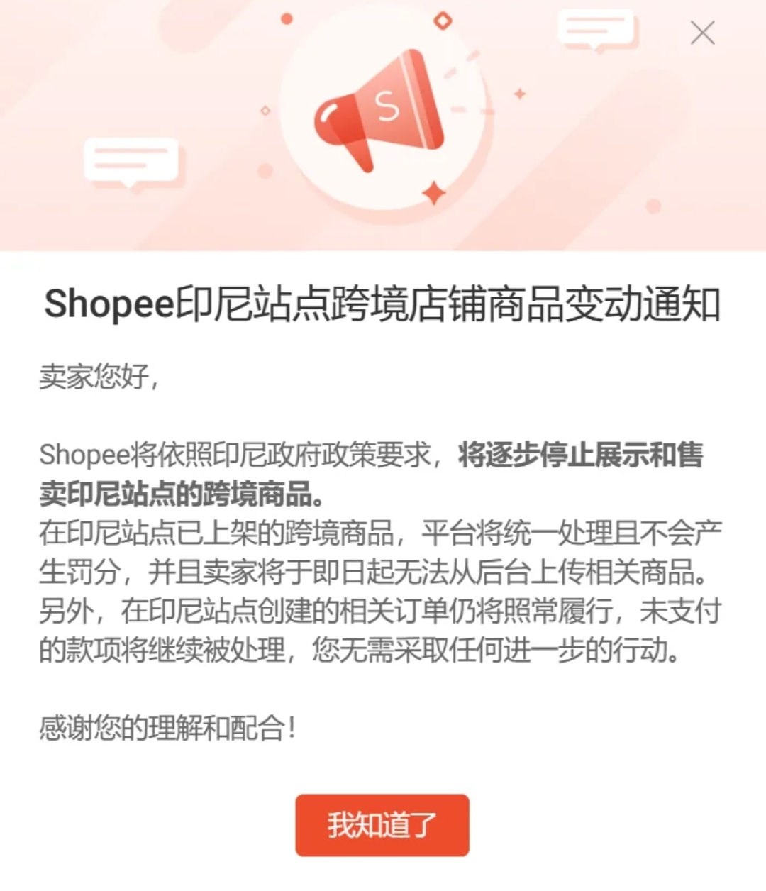 一時(shí)間其他電商平臺亦如驚弓之鳥般迅速做出反應(yīng)。Shopee隨即發(fā)出了“印尼站點(diǎn)跨境店鋪商品變動通知”,通知里寫到Shopee將按照印尼政府政策要求,逐步停止展示和售賣印尼站點(diǎn)的跨境商品。此外,2023年12月31日前,Shopee印尼站的海外倉及第三方倉將全面停止向跨境賣家開放。Lazada方面則是發(fā)布通知稱即日起將下架與印尼最新政策相沖突的全部商品。