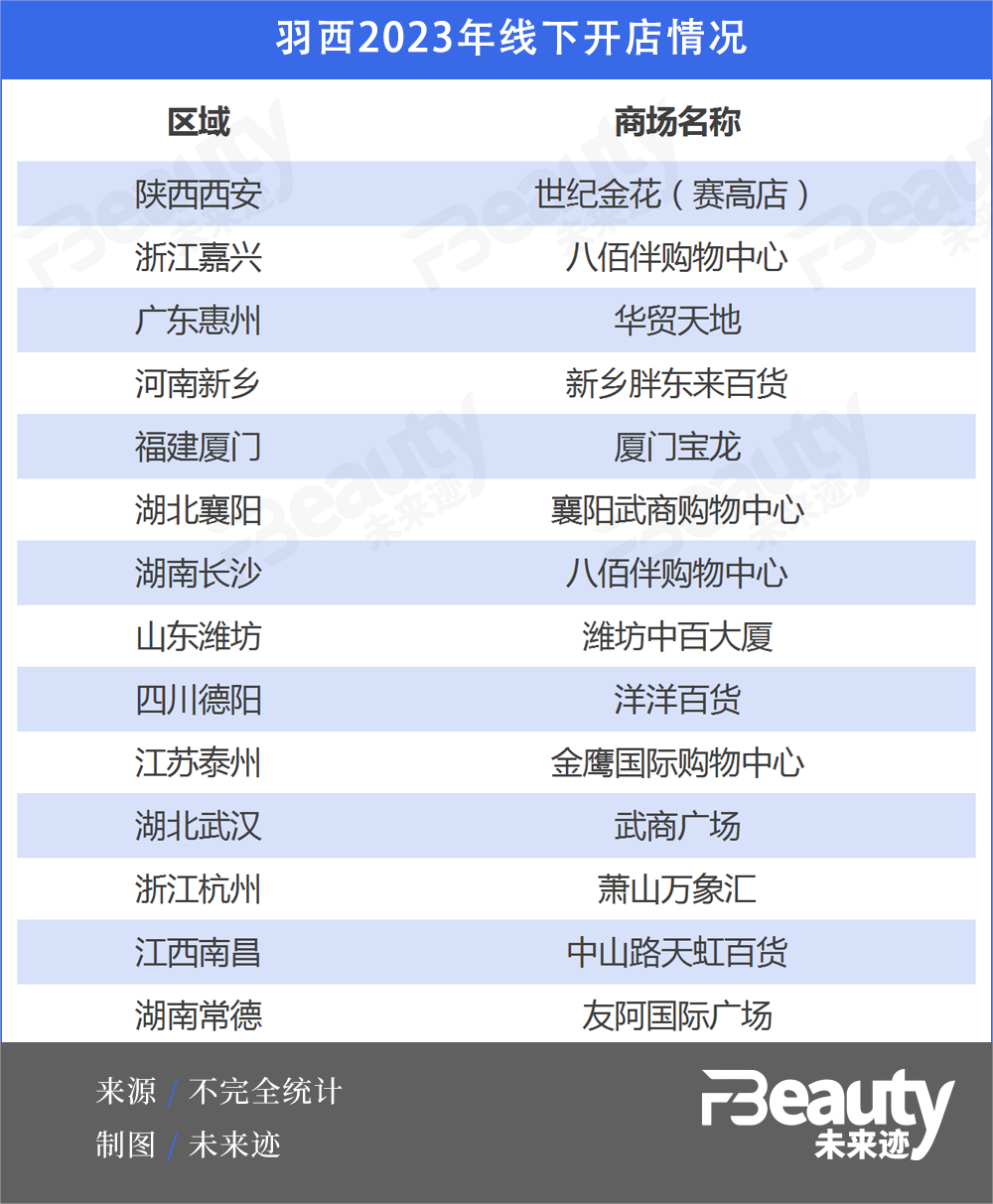 據(jù)羽西方面介紹,截至8月,今年品牌已開設(shè)了12家新柜臺(tái),基本以每月1-2家店的速度勻速前進(jìn)。