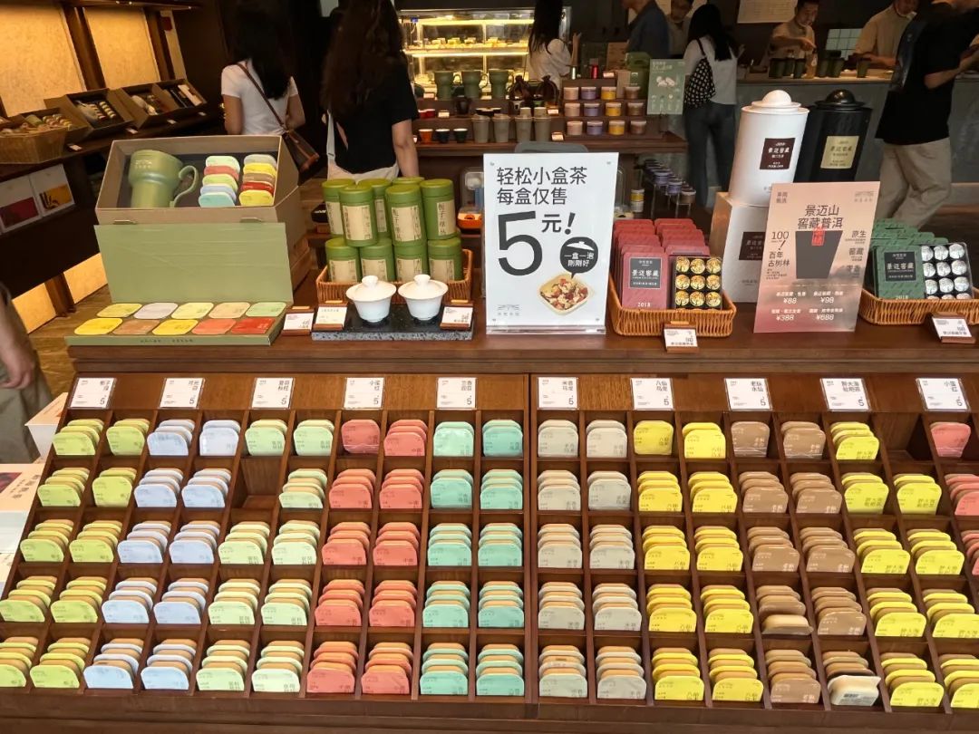 奈雪茶院的店長表示,“主推小盒茶,是想讓年輕人更輕松的喝到茶,進(jìn)店有茶喝,也能輕松帶走”?梢妼τ谀窝┎柙憾,純茶茶飲并不是銷售目的,零售區(qū)的小盒茶才是。