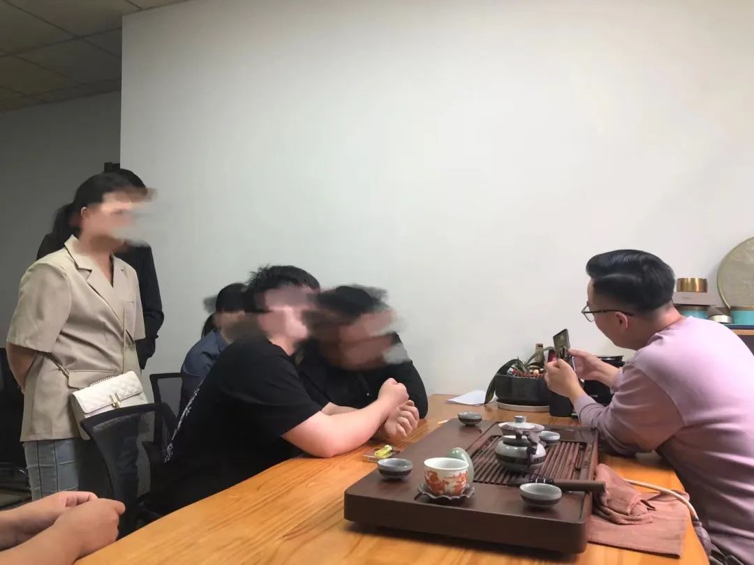 六人涌進(jìn)10平的辦公室。阿龍和他們遞煙,握手,招呼員工加椅子,再坐回茶桌前,端起壺發(fā)現(xiàn)茶盅不夠。