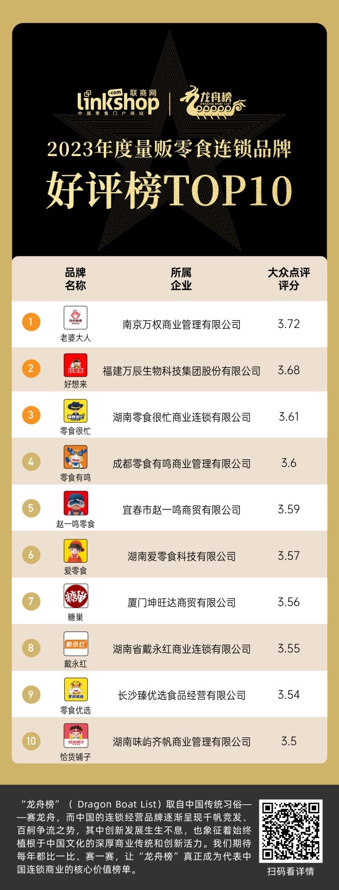 “龍舟榜”(Dragon Boat List)取自中國傳統(tǒng)習(xí)俗——賽龍舟,而中國的連鎖經(jīng)營品牌逐漸呈現(xiàn)千帆競發(fā)、百舸爭流之勢,其中創(chuàng)新發(fā)展生生不息,也象征著始終植根于中國文化的深厚商業(yè)傳統(tǒng)和創(chuàng)新活力。我們期待每年都比一比、賽一賽,讓“龍舟榜”真正成為代表中國連鎖商業(yè)的核心價(jià)值榜單。