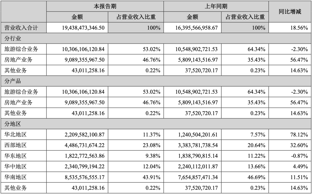 華僑城2023年上半年?duì)I業(yè)收入構(gòu)成,圖源:企業(yè)財(cái)報(bào)
