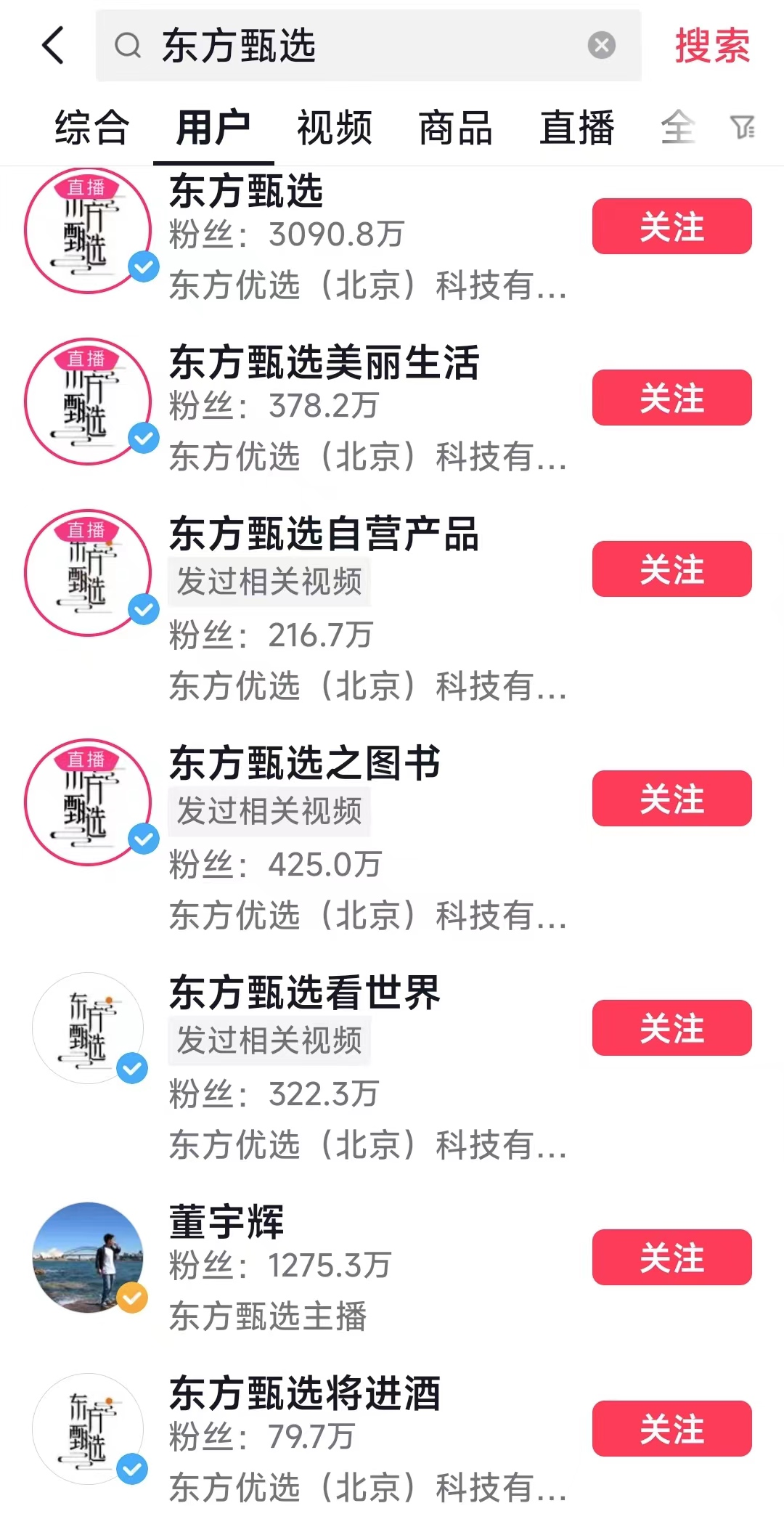 橫向來看,目前,東方甄選共開設(shè)6個直播賬號,除了主賬號外,還包括東方甄選美麗生活、東方甄選自營產(chǎn)品、東方甄選之圖書、東方甄選看世界、東方甄選將進酒五個矩陣賬號。