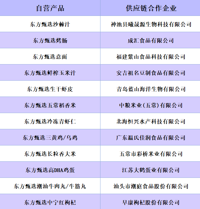 東方甄選自營產(chǎn)品和合作企業(yè),圖源:奇偶派繪制
