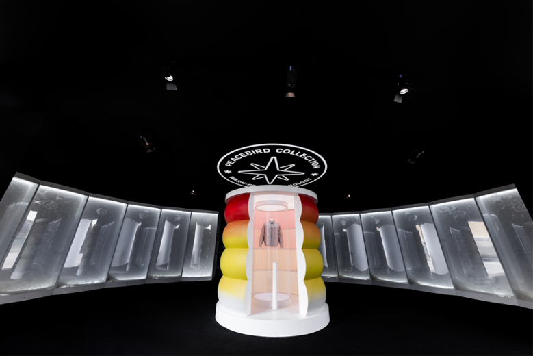 為了讓每一位來賓能夠更沉浸地感受羽絨的柔軟輕盈質(zhì)感,大秀外場(chǎng)更是通過蓬軟的空間設(shè)計(jì)、可視化的絨朵裝置和3D全息動(dòng)態(tài)產(chǎn)品呈現(xiàn),體現(xiàn)品牌對(duì)羽絨的深入探索。