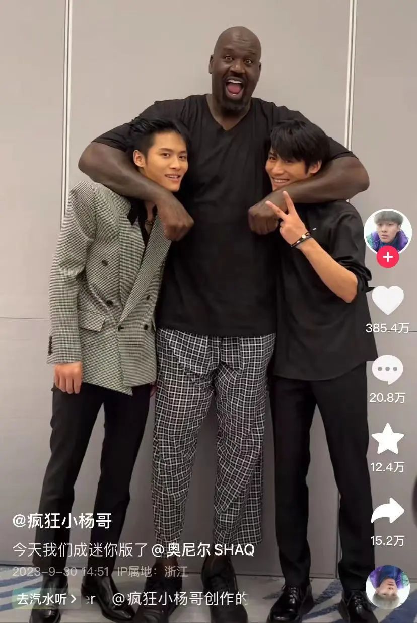 和“大鯊魚(yú)”出現(xiàn)在同一鏡頭中的小楊哥瘦削、衣著簡(jiǎn)單,看起來(lái)和國(guó)際球星八竿子打不著關(guān)系。他的另一個(gè)身份是抖音的絕對(duì)的頭部,頂流中的頂流——在抖音擁有1.2億粉絲,僅次于人民日?qǐng)?bào)和央視新聞。