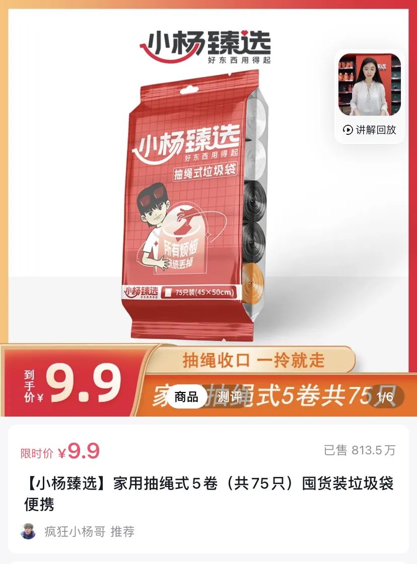 9塊9的小楊甄選垃圾袋一度售出超過(guò)800萬(wàn)單