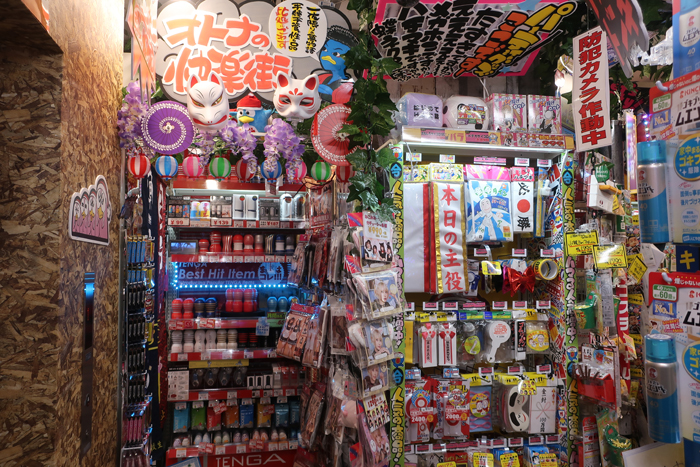 由于周邊有很多飛鏢吧、麻將館等娛樂(lè)場(chǎng)所,因此,本店根據(jù)實(shí)際情況豐富商品種類,提供與麻將、棋盤游戲和其他游戲相關(guān)的產(chǎn)品。此外,還有情愛(ài)商品、派對(duì)商品、服裝等,讓顧客的“微醺心情”更加激動(dòng)。