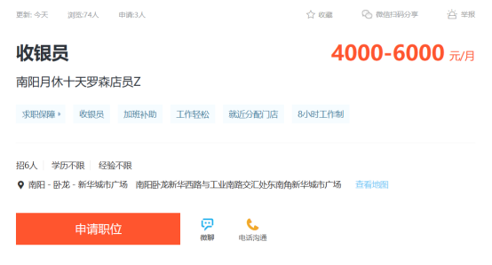 日前,武漢中百在多個招聘平臺上招聘中百羅森店員、店長等職位,工作地點(diǎn)為南陽,承諾就近分配門店、月休8天,要求年齡18至40歲,有無工作經(jīng)驗(yàn)均可。