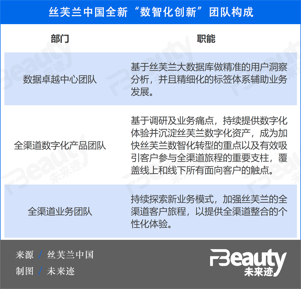 2022年,在陳冰的主導(dǎo)下,絲芙蘭正式啟動(dòng)全渠道數(shù)智化轉(zhuǎn)型,并成立了全新的“數(shù)智化創(chuàng)新”團(tuán)隊(duì),平行于電商、門(mén)店、營(yíng)銷(xiāo)等職能部門(mén),以加快數(shù)智化轉(zhuǎn)型進(jìn)程。