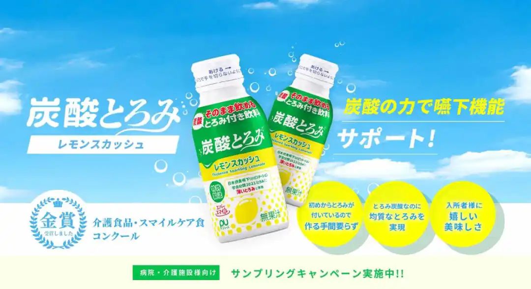 更令人意想不到的是,氣泡水還能作為護(hù)理食品提供給病人。Ever Smile碳酸濃飲檸檬南瓜味就是一種旨在支持吞咽困難者生活的飲料,自發(fā)布以來得到了療養(yǎng)院工作人員的積極評價(jià)。有研究表明,碳酸飲料的碳酸度可以刺激大腦的吞咽控制功能,這款產(chǎn)品正是利用了這一特點(diǎn)為吞咽困難者提供了豐富多樣的選擇,還榮獲了日本微笑護(hù)理食品大賽金獎(jiǎng)。