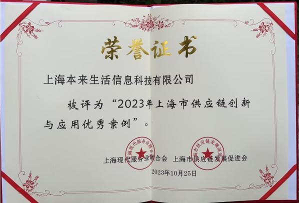 在10月25日舉辦的2023第十屆上海供應鏈發(fā)展會上,本來生活獲評為“2023年上海供應鏈創(chuàng)新與應用優(yōu)秀案例”企業(yè),產(chǎn)供銷配一體化全流程供應鏈服務(wù)能力再獲權(quán)威認可。
