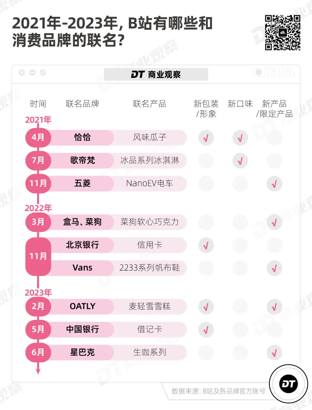 《DT商業(yè)觀察》也整理了近兩年B站和其他消費(fèi)品牌的聯(lián)名及其聯(lián)名產(chǎn)品,比如恰恰、五菱、Vans、OATLY等。