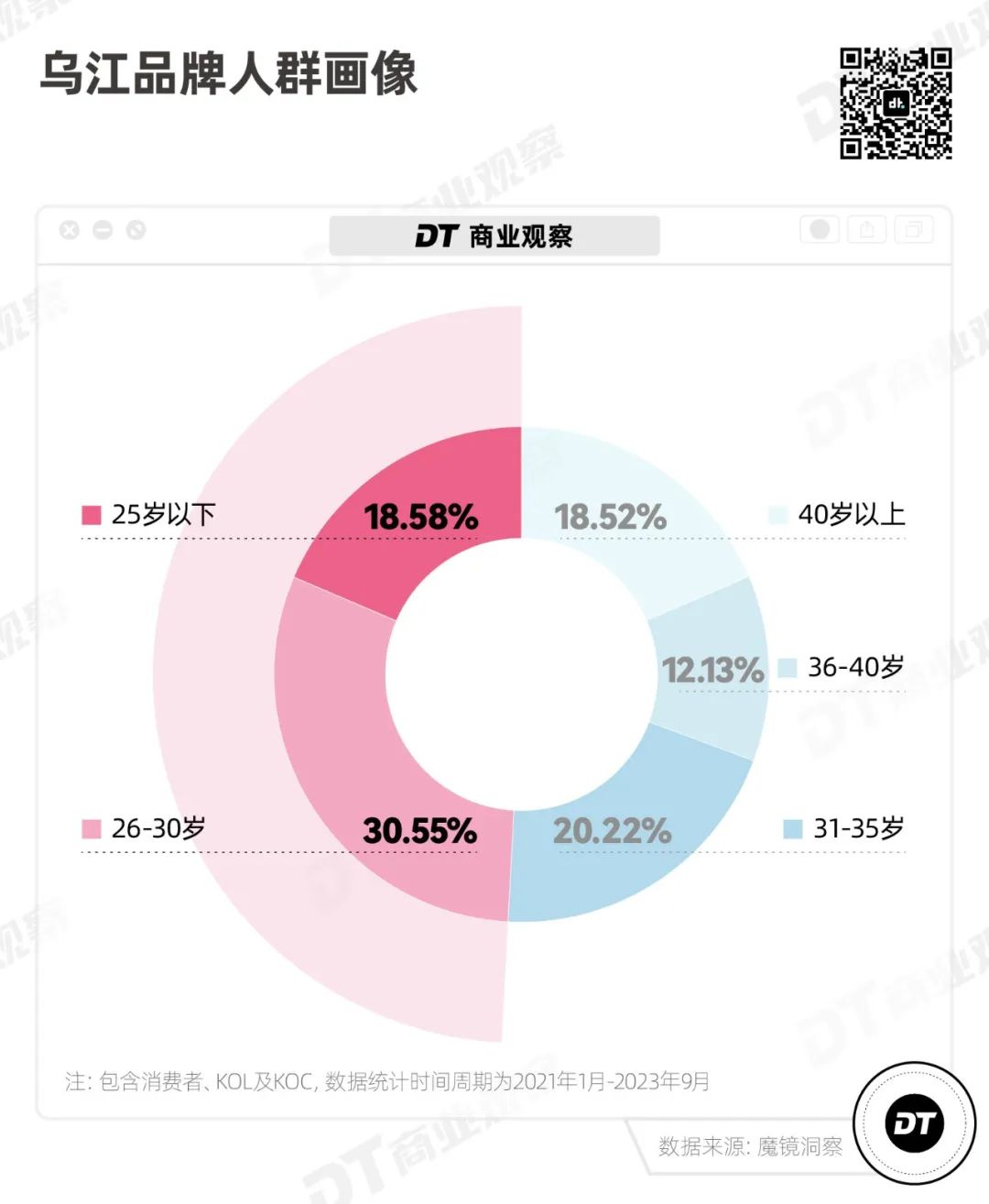 在過往,調(diào)味品、腌制榨菜/泡菜這類產(chǎn)品的食用場(chǎng)景偏向于家庭。魔鏡洞察的數(shù)據(jù)顯示,烏江品牌的用戶以30歲以上的人群為主,30歲以下的占比不足一半。