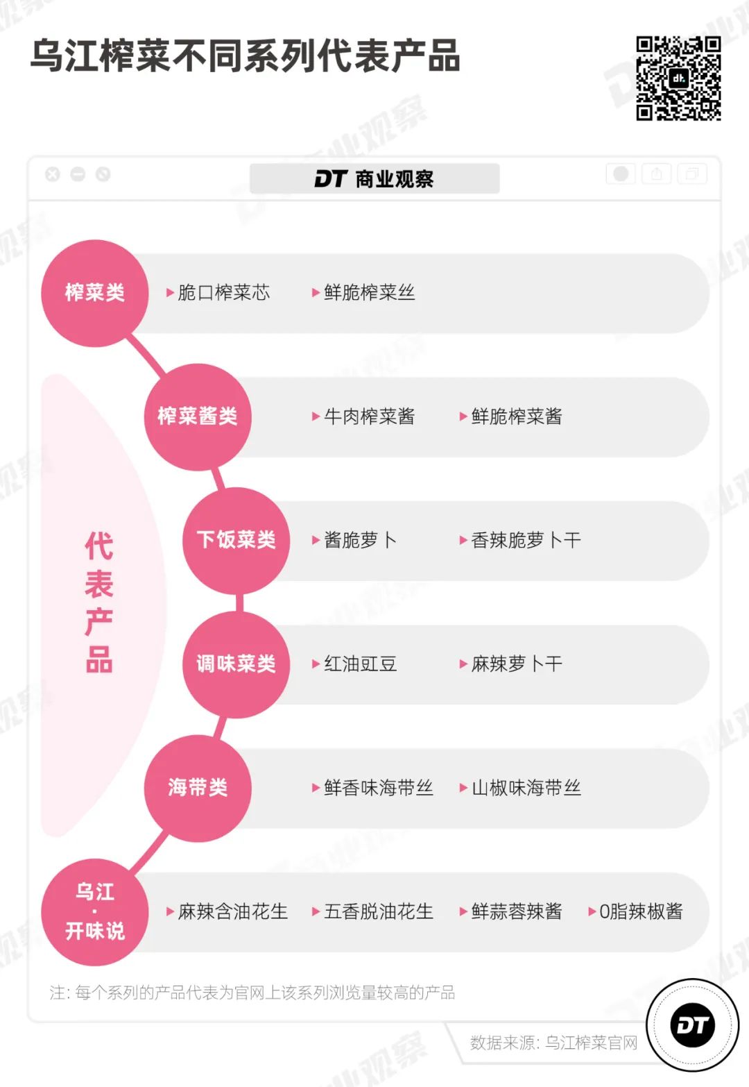 在榨菜以外,它還推出了麻辣含油花生、鮮香味海帶絲、紅油豇豆等新品,并在去年推出“烏江翠小菜”,官宣布局休閑零食市場(chǎng)。