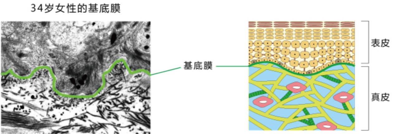 如何理解這個(gè)成分的功能?先從皮膚老化的機(jī)制上看,在人體真皮和表皮的交界處、有一層十分纖薄的生物膜——基底膜,它像一件“雙面魔術(shù)貼”做成的緊身衣,將表皮和真皮牢牢扣在一起,這使它成為皮膚緊致和彈力的關(guān)鍵:當(dāng)它不再緊致時(shí),皮膚也會(huì)出現(xiàn)結(jié)構(gòu)性松弛。